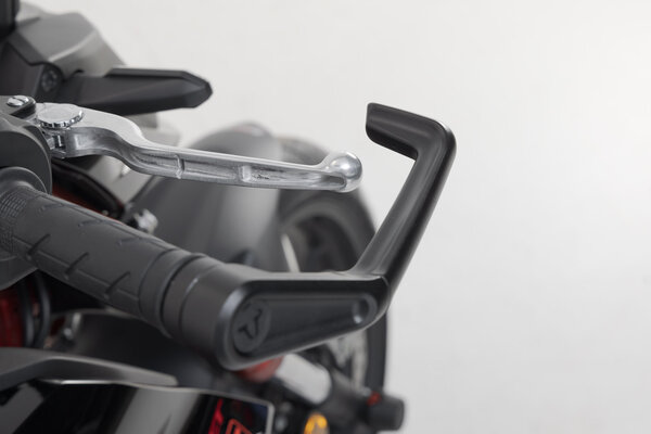 These beautiful lever guards made from black, anodized aluminum are an eye-catcher and protective product at the same time. Originally used in racing, they are a attractive addition for the style-conscious rider. They are mounted to the side of the handlebar, and the bike-specific screws are included in delivery.