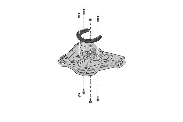The adapter plate's turn latch features a safety mechanism that guarantees the secure hold of TRAX top cases, SysBag 15/30 with adapter plates and PRO or EVO tank bags