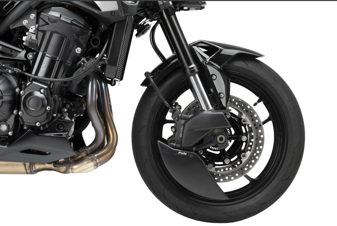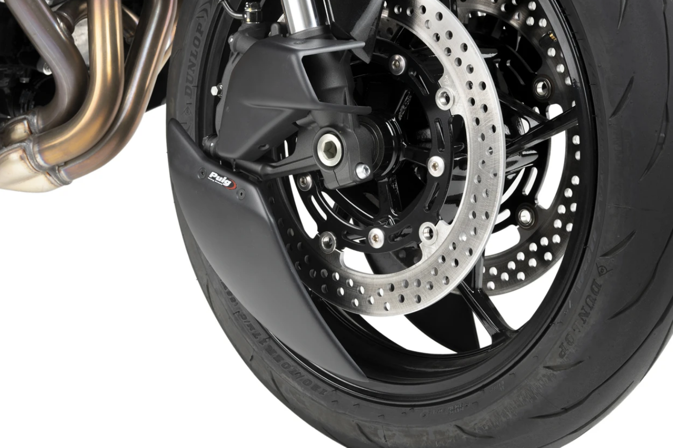 Its studied design, in addition to providing a more sporty and personalized aesthetic, eliminates turbulence at the front wheel by creating a partial lenticular cover that favors the motorcycle's aerodynamics, especially at high speeds. Includes sturdy, lightweight aluminum brackets finished in discreet textured black.