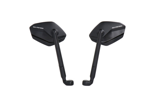 This Sport mirror set has a long mirror arm. You can install it on motorcycles with mirror mounts featuring an M10x1.25 thread. By using a spacer, which is included in the scope of delivery, this mirror set can be mounted higher on the handlebars and will not come into contact with other components.