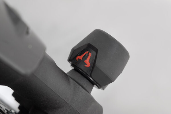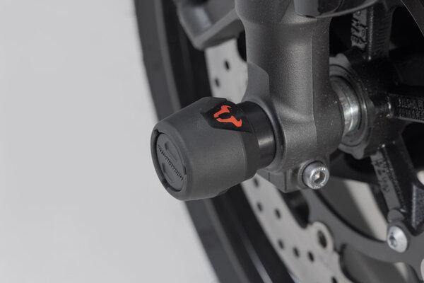 The front axle crash pads made of abrasion-resistant plastic protect the drive shaft from damage in the event of a fall. The smooth surface also provides excellent sliding properties. The polished bull logo in red adds a visual highlight to your motorcycle.