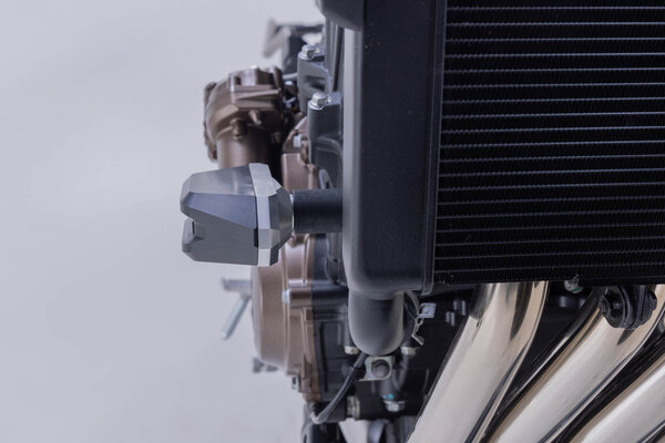 Frame crash pads provide additional protection in the event of a fall. The shape, surface and material of the pads provide excellent sliding properties to reduce damage to the motorcycle. The robust aluminium mounting bracket is easy to install, and the abrasion-resistant, CNC-milled slider pads are replaceable.