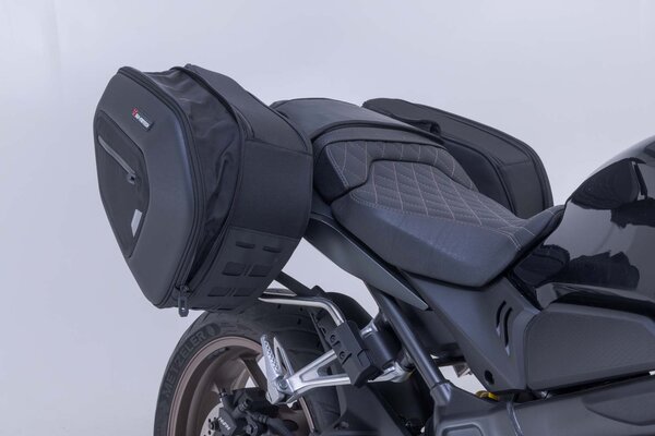 Developed specifically for sporty motorcycles, the saddlebags have a minimal effect on driving characteristics. When travelling without luggage, the removable support arms can be detached with a simple step, leaving only inconspicuous holders behind on the bike.