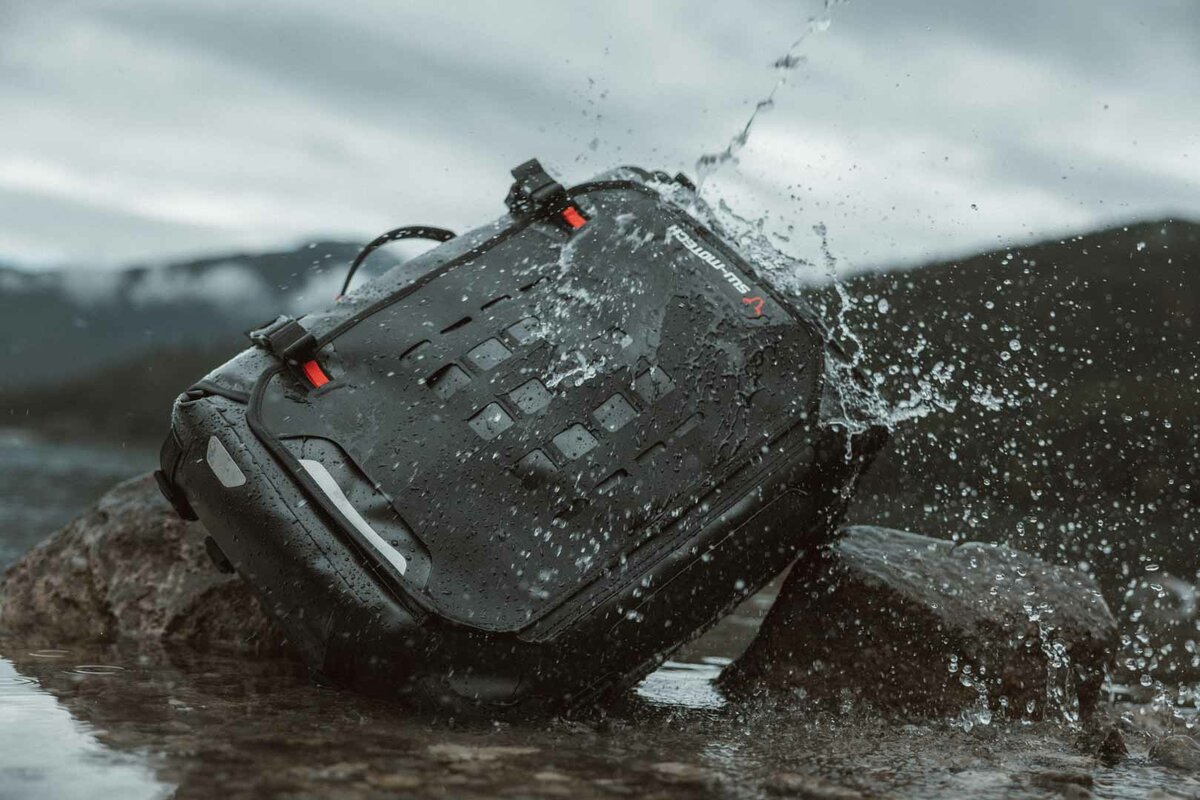 The largest model of the SysBag WP trio is made entirely of TPU material and has a total volume of 40 liters. The SysBag WP L features a roll-top closure and an overlapping lid. The inner pocket is removable, and the two freely positionable dividers with Velcro fasteners make it easier to organize your luggage. The SysBag WP L is designed exclusively for off-road use. The belt buckles of the front compartment are deliberately placed on the top so that no branches can get caught when riding on narrow paths. The outer edges of the bag are covered with robust Hypalon material, which provides additional protection in the event of a fall. The four compression straps on both sides allow the bag to be lashed down into a compact unit – even with a small load. On the front of the SysBag L WP, there is an additional compartment that is easy to access and offers plenty of space for a rain suit or maps in DIN A4 format. The two zippered compartments on the inside of the bag and lid provide additional storage space for smaller items.