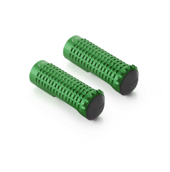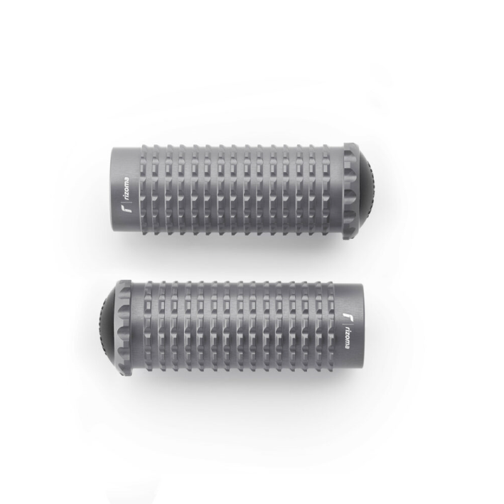The Rizoma pegs and their mounting kit design takes inspiration by the racing world. So, when mounting, the pegs are not perfectly aligned with the ground, but appear slightly tilted upwards. The upward has been designed to prevent foot traction loss outwards while driving.