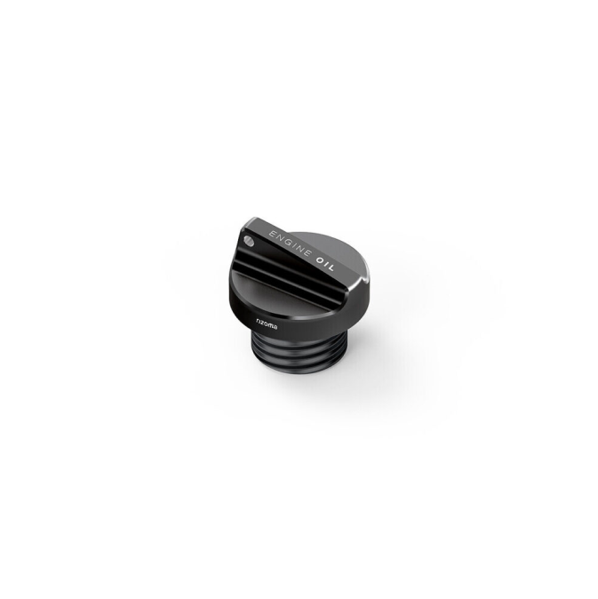 The racing-derived Rizoma oil filler cap is fitted with a safety lock for optimal seal. Made entirely from billet aluminum, it is then anodized to ensure quality and durability.