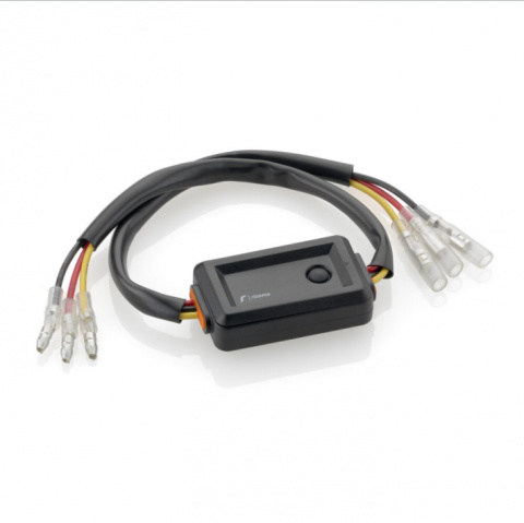 The DBL (Dynamic Brake Light) system is a safety device, which makes brake light flash to warn following vehicles of sudden hard braking. The DBL is an accelerometer so it does not require a connection to the motorcycle's hydraulic braking system. The DBL can be connected to the motorcycle brake light or to our multifunction turn signals (turn signal, tail and brake lights). Device operation can be adjusted.