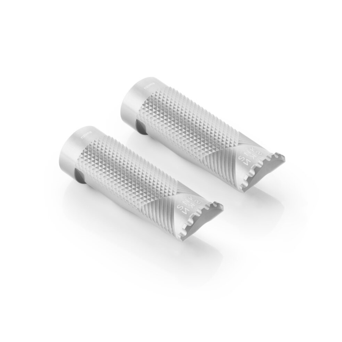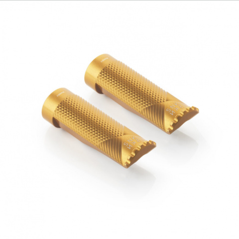 The Rizoma pegs and their mounting kit design takes inspiration by the racing world. So, when mounting, the pegs are not perfectly aligned with the ground, but appear slightly tilted upwards. The upward has been designed to prevent foot traction loss outwards while driving.