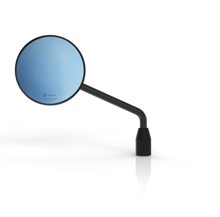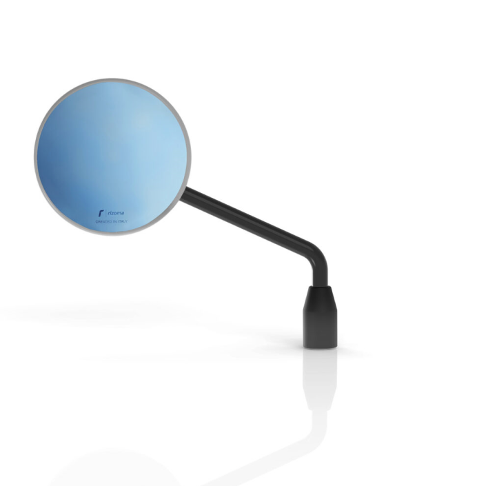 e-pop mirror is characterized by clean and essential lines, as well as by its exclusive and stylish colors. The R&D team updates the classic round standard adding a dynamic twist to the overall design, which perfectly embodies Rizoma’s values as reinventing the way we see the world. The solid but lightweight aluminum stem is combined with a technopolymer glass shell that is enriched with the new Rizoma texture named Altera. It is a direct mount mirror, with a large reflective areas tha complies with European homologation standards and guarantees an optimal field of view