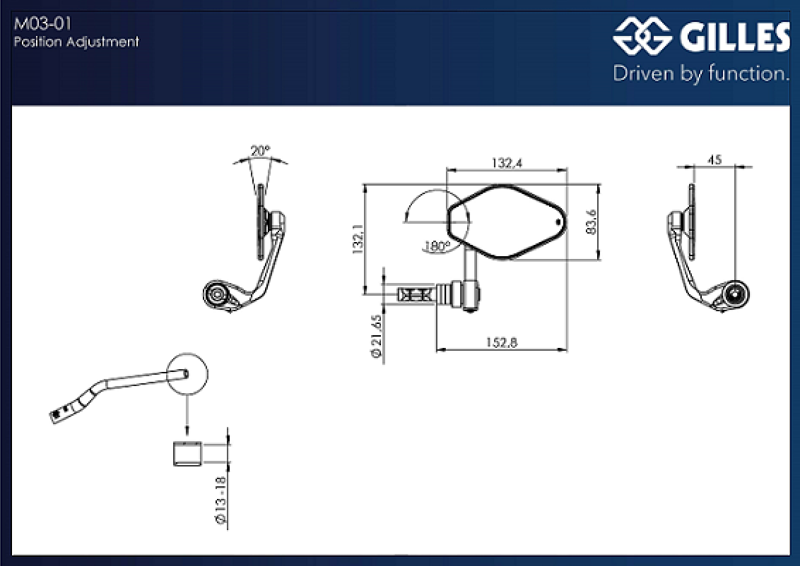 首页 > Gilles Tooling Stratos bar end mirror symmetrical 13-18mm