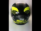 Description 簡介:KYT Vandetta #50 Topan (Yellow) KYT 泛維達 #50 Topan彩繪 黄底 Free chrome visor 1 piece 隨帽附送電鍍護鏡一片 Air Pump System 内襯兩頰充氣系统 Sunglass included 内置太陽鏡 DOT approved