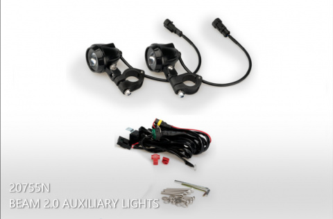 BEAM 2.0 auxiliary lights are equipped with a fuse and wiring for direct connection to the battery and a waterproof switch adaptable to the handlebar. Its aluminum casing is specially designed to promote heat dissipation.