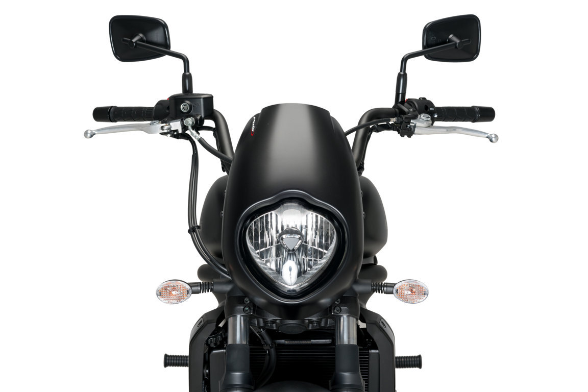 Made with materials highly resistant to impacts and with great aerodynamic capacity, this piece is available for Harley Davidson, Indian and Japanese motorcycle models, manufactured specifically for each motorcycle model, it adapts perfectly to the headlight, either rounded or shaped, such as the Vulcan S model.