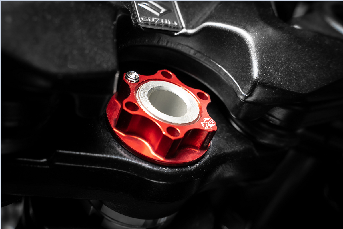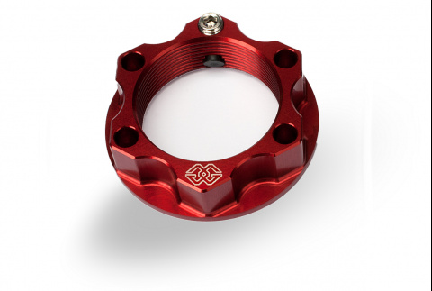 Looking at your motorcycle you will find the GILLES.TOOLING ACMA to be the icing on the cake. Anodized in four different colors, it crests your steering central and catches every eye. GILLES.TOOLING ACMA is derived straight from our popular patented self-locking titanium ACM safety lock. In common with its ancestor, it has the easy to use pin-interlock system to prevent it from loosening. ACMA Is designed solely for use as top yoke nut. Do not use it on the rear axle or swing arm axle.