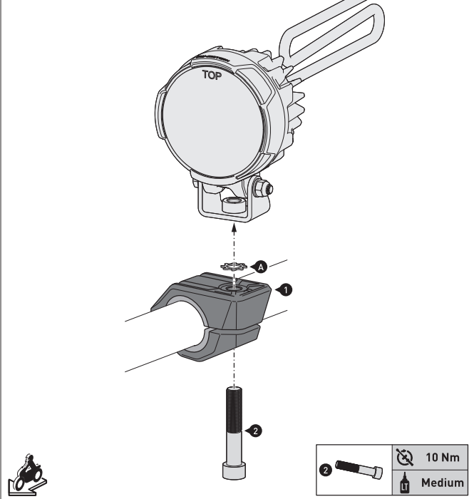 With these clamps, EVO lights can be mounted to crash bars or other bike parts with the appropriate pipe diameter. Rubber inserts for adapting to 22/25.4/26/27 mm and 28 mm are included in delivery.