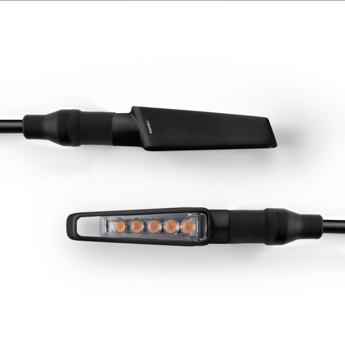 Designed to embody both cutting-edge technology and sleek aesthetics, Vision is more than just a turn signal: it’s a statement. Crafted with precision and attention to detail, it features bold contours and compact dimensions that seamlessly integrate into the lines of the bike, adding a touch of style to its profile. But the true added value lies within. Featuring 5 LEDs divided into 5 sectors, they illuminate fluidly within a lightweight, aerodynamic aluminum frame, ensuring unrivaled visibility without compromising style or performance. Powered by advanced SMD LED technology, Vision not only meets but exceeds European homologation standards delivering unparalleled luminosity and flawless sequential activation. Made of high-grade aluminum alloy, Vision is available in two anodized finishes: silver and matte black.