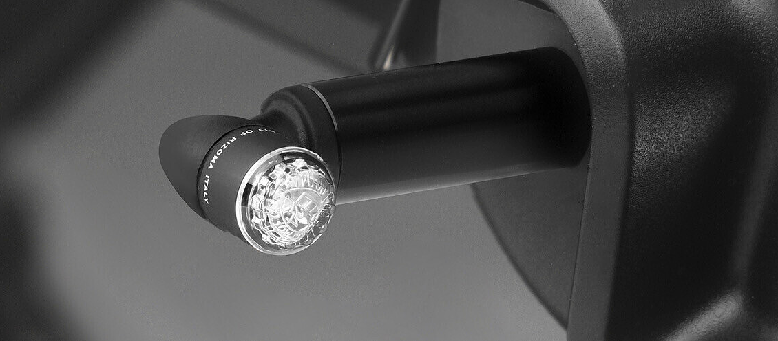 A pragmatic design that, despite of its tiny dimensions, perfectly satisfies its function. In Light Unit the light beam develops longitudinally in respect to the turn signal fastening point (instead of at 90°, as most commonly occurs in other turn signals), increasing application ease and mounting possibilities. So, Light Unit, represents a new and innovative concept for Rizoma's turn signals, a light-signaling device that can be effectively fitted in several options according to the specific user’s needs, without sacrificing aesthetic. These plus are actually the cornerstones of its patent.