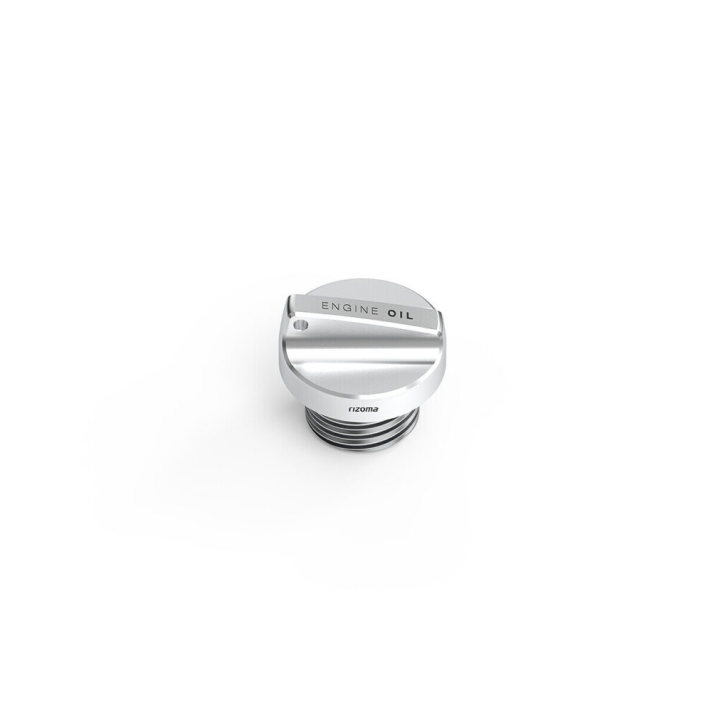 The racing-derived Rizoma oil filler cap is fitted with a safety lock for optimal seal. Made entirely from billet aluminum, it is then anodized to ensure quality and durability.