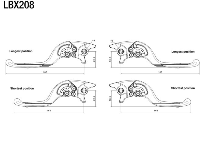 The brake lever kit includes both the front and rear brake lever. Both levers are Adjustable Plus: in addition to the lever-knob distance control system, positioned above for greater accessibility, they also have a sliding system that allows the lever to be adjusted in length. Furthermore, the kit includes two technopolymer inserts to be used to eliminate the gap created when the lever is at its maximum extension (up to 20 mm), thus preventing glove wear.