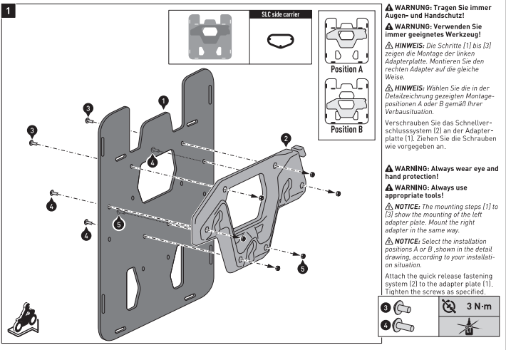 For each SysBag WP bag (S, M, L) there is a corresponding adapter plate for the left and right side