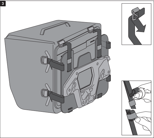 The adapter plates allow you to attach your SysBag WP bag to a side carrier or rack. Before first use, the quick lock system is mounted on the adapter plate.. With integrated straps on the back of the SysBag WP bags the adapter plate is attached to the bag.