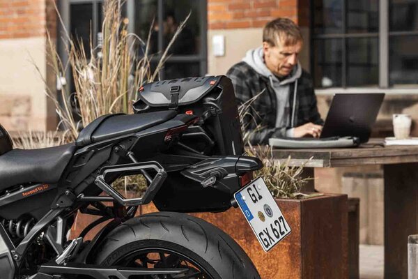 With the new WP Side Bags, specially developed for the innovative V-LOC side carrier with magnetic guide, SW-MOTECH combines uncompromising waterproofing with high everyday practicality and elegant design. The bags combine a sturdy, robust construction with the comfort of soft luggage. The V-LOC mounting system allows for quick and safe installation on the motorcycle. Integrated MOLLE surfaces offer flexible expansion options – ideal for everyday use or extended motorcycle tours.
