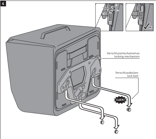 Quick lock system of the adapter plate guarantees a secure hold of the SysBag WP on the side carrier