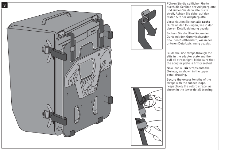allow you to attach your SysBag WP bag to a side carrier or rack. Before first use, the quick lock system is mounted on the adapter plate.. With integrated straps on the back of the SysBag WP bags the adapter plate is attached to the bag.