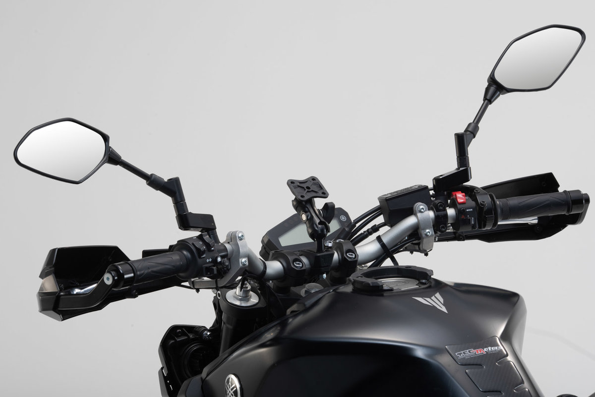 Safe positioning for GPS device or smartphone in the motorcycle cockpit: This universal set provides various mouting options for your digital route planner, the included Navi Case Pro device bag protects the hardware from wind and weather. Installation options include mirror thread mounting and fastenings with M6 or M8 ball as well as a handlebar clamp for tube diameters of 22 mm, 28 mm and 1 inch. The swivel mounted socket arm allows precise positioning in the cockpit - this way the display can stay in plain sight witout impairing the view to the instruments.