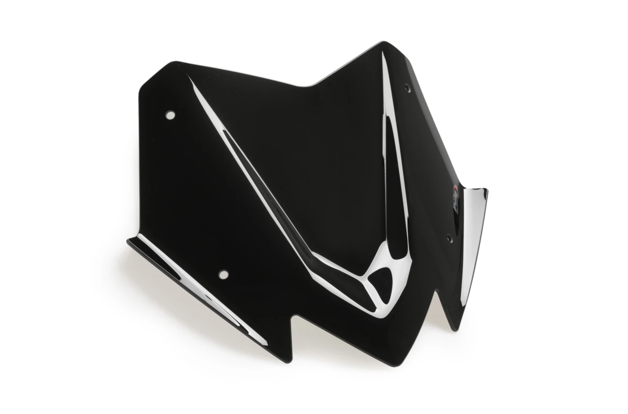 Improve the sporty image of your motorcycle with the V-Tech Line Sport Puig screen. The screen belongs to the V-Tech Line design and has been developed in the wind tunnel to ensure its aerodynamic improvement, as well as its stability. In addition to its aerodynamic resistance, its angular shape in the central and lateral portions allows the redirecting and channelling of the wind and therefore minimizing turbulence.