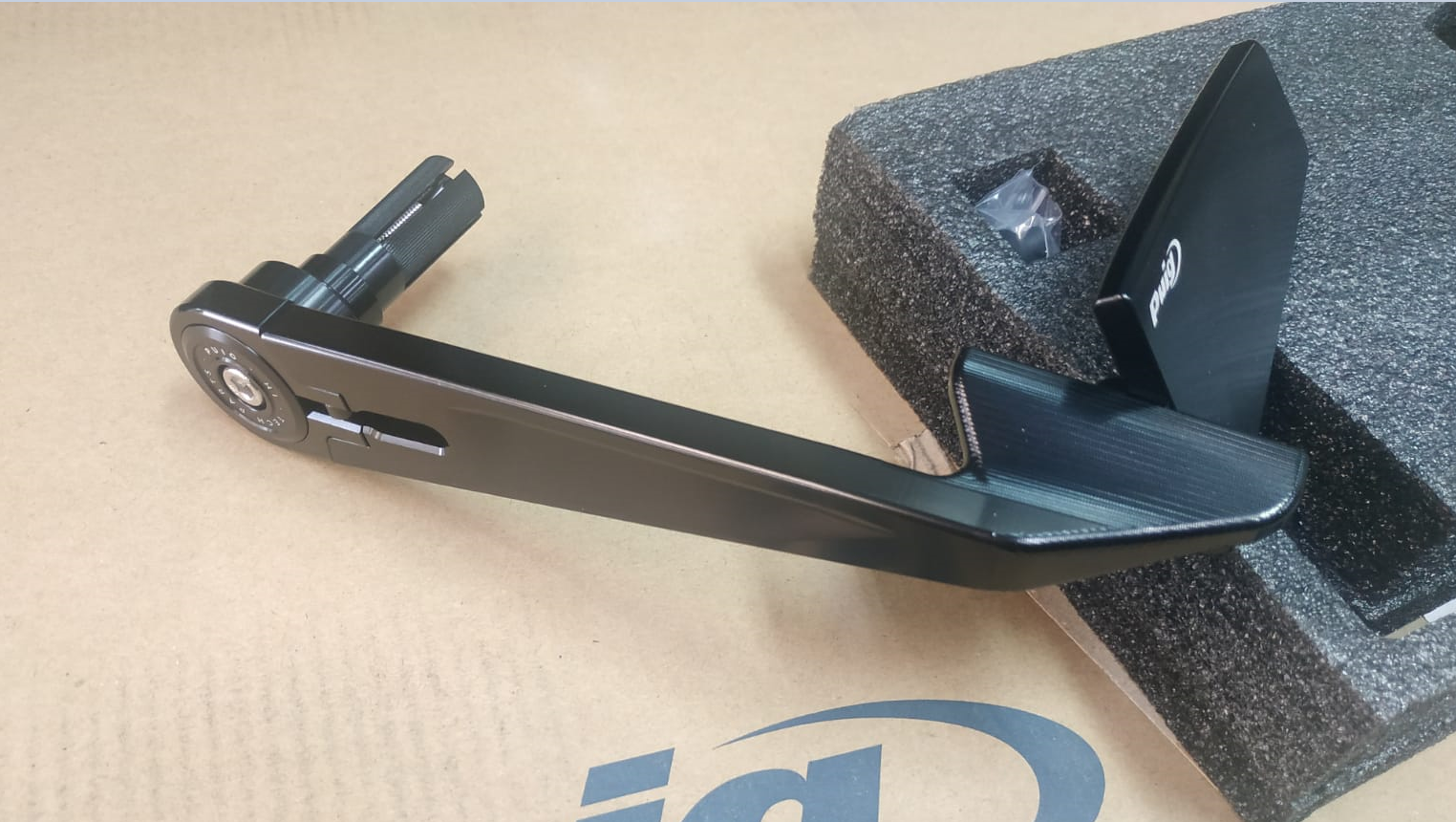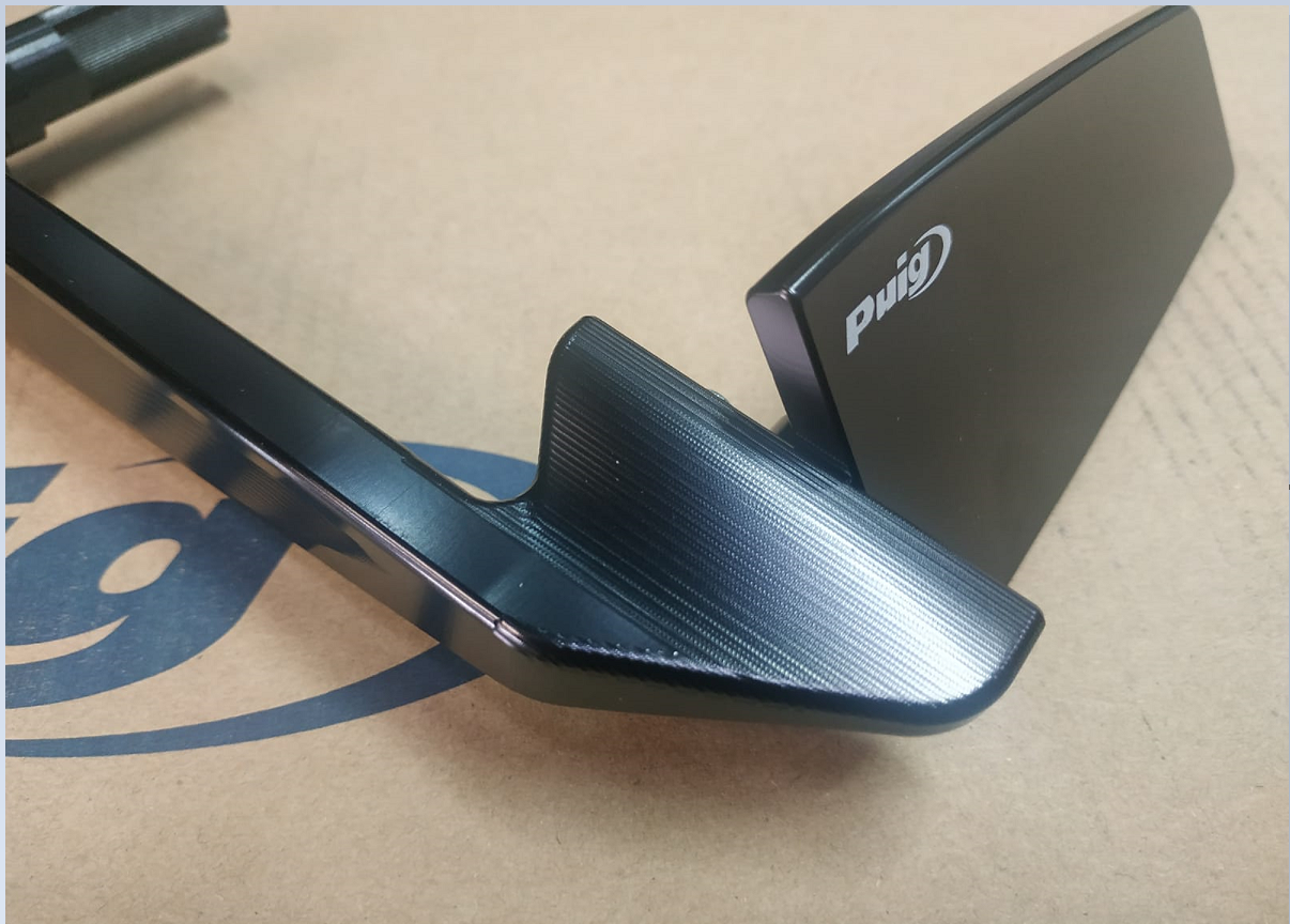 This innovative mirror is easily installed at the end of the handlebar and offers dual functionality: mirror and handguard. Its design allows the mirror to fold, transforming it into an elegant spoiler.
